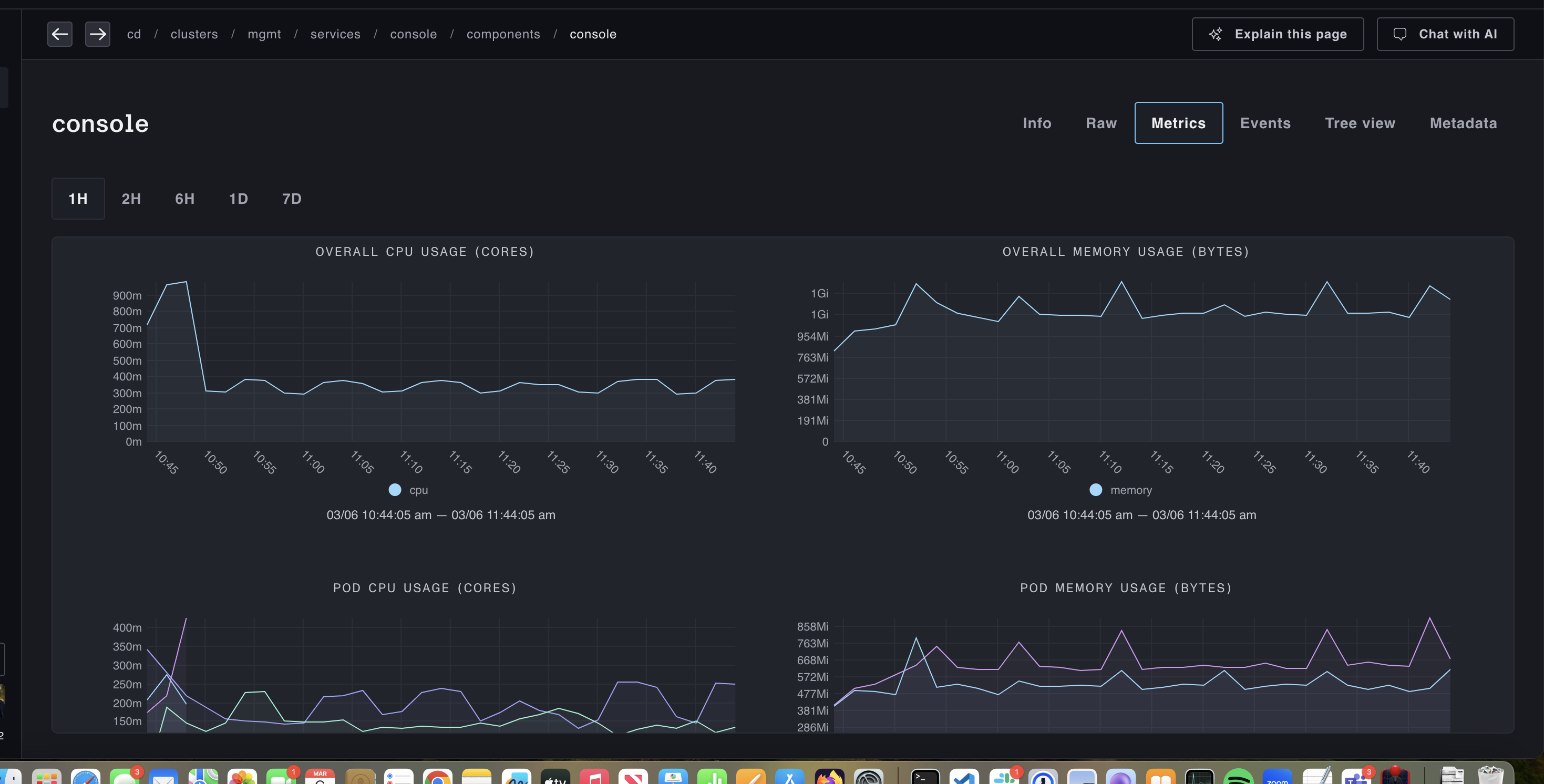 Once configured, if you go to a compute-related resource and click on the Metrics tab, you'll see something like: